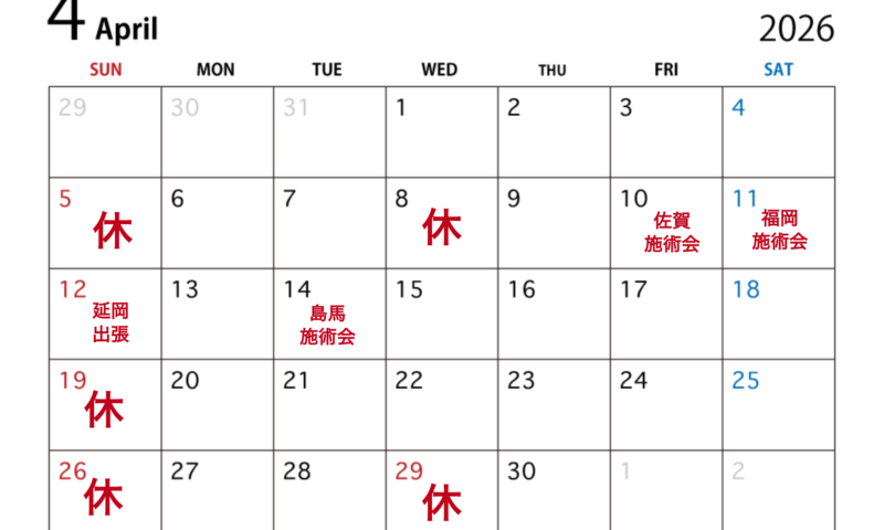 🔸4月14日(火)島原施術会